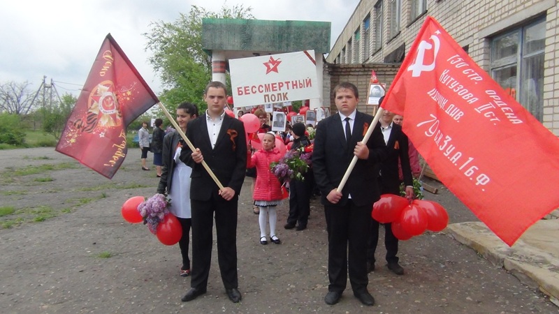 Ученики и их родители, работники и учителя нашей школы приняли активное участие в акции «Бессмертный полк». 9 мая от здания школы, по улицам села они прошли торжественной колонной с красными шарами, флагами и фотографиями своих родственников-участников войны, погибших или умерших. Закончилось шествие на площади в центре села, где был открыт обновленный памятник погибшим односельчанам. Старшеклассники застыли в почетном карауле у вечного огня, а когда почетные гости разрезали ленточку, все присутствующие возложили цветы к памятнику. И даже сильный дождь не помешал празднику.
