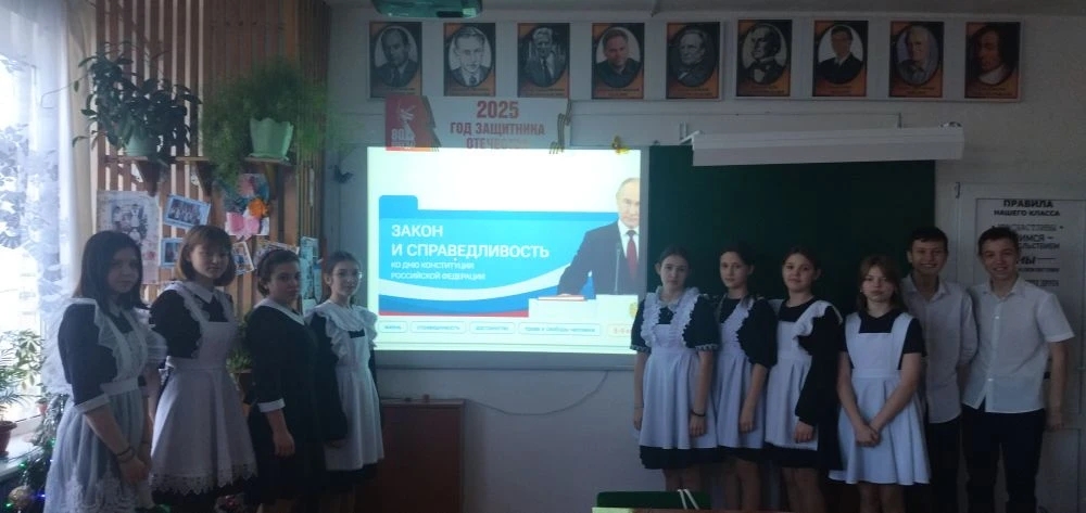Утро понедельника 15 декабря 2025 года в нашей школе традиционно началось с торжественной линейки, церемонии вноса флага и исполнения гимна Российской Федерации. 15 декабря прошли уроки «Разговоры о важном», на тему: «Закон и справедливость», приуроченные ко Дню Конституции Российской Федерации. Мы обсудили, что справедливость – это не просто абстрактное понятие, а одна из ключевых духовно-нравственных ценностей, лежащая в основе российского законодательства. День Конституции – это не просто государственный праздник, а повод задуматься о том, насколько важны справедливость, ценность демократии и верховенство закона в нашей жизни. Знание законов нашей страны – это не только право, но и прямая обязанность каждого гражданина России. Законы наделяют нас правами, которые помогают нам добиваться справедливости, и одновременно налагают обязанности, которые мы должны выполнять для ее обеспечения. Пусть каждый день будет наполнен пониманием и уважением к законам, а стремление к справедливости станет нашим общим ориентиром!