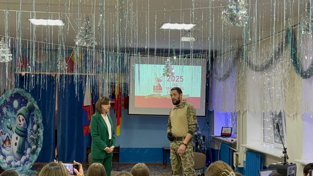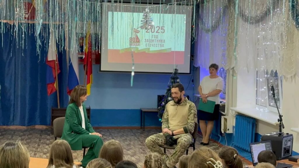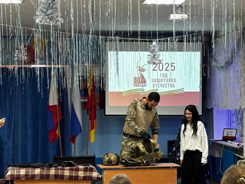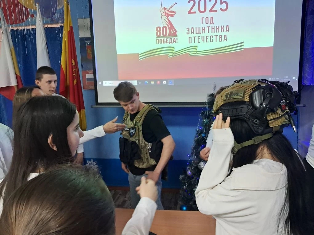 В рамках мероприятий, посвящённых Году защитника Отечества, 12 декабря в Большеремонтненской СШ состоялась очень важная и трогательная встреча. Советником директора по воспитанию Деникиной М.В. был проведен Урок Мужества для учеников 5-11 классов, где почетным гостем стал ветеран специальной военной операции, выпускник Ремонтненской школы №1 Лозовой Илья Владимирович.