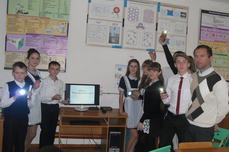 15 декабря ученики нашей школы приняли участие во Всероссийском тематическом уроке «Свет в нашей жизни». Его провели учитель истории и обществознания Шапошникова И.И. и учитель физики Приколотин Е.А.. Этот урок прошел в рамках Международного года света и световых технологий. Проведение года приурочено к ряду юбилейных дат, относящихся к науке о свете и отмечаемых в 2015 году.