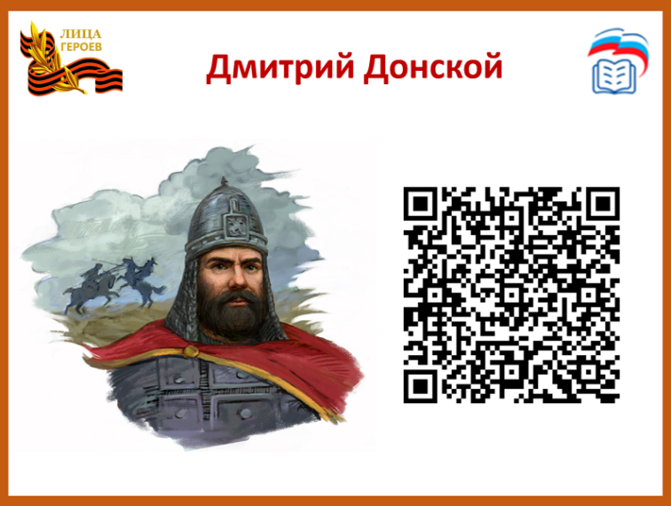 Дмитрий Иванович Донской (1350 — 1389 гг.) — великий князь Московский (с 1359 г.), Владимирский (с 1362 г.) и Новгородский (с 1386 г.), выдающийся государственный деятель и прославленный полководец. С его именем связано укрепление руководящей роли Москвы в объединении русских земель и совместной защите их от иноземных завоевателей, в том числе победа в Куликовской битве (1380).